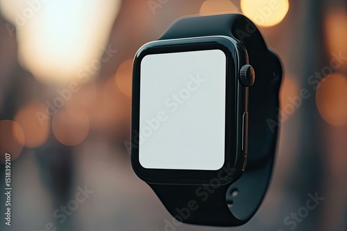 High Detail Picture of Realistic Smart Watch Close Up Front View Mockup
