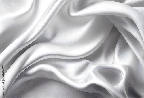 High detailed Close up White soft silk fabric clean backround wavy beige satin texture pattern for walllpaper, background and design art work top view Generative Ai
