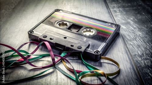 High Dynamic Range Cassette Audio Tape with Ribbon Suggesting Musical Rhythm