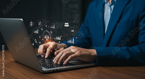 high quality Businessman Working on Laptop with Financial Data