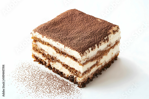 High resolution 4k image of tiramisu dessert layered with rich coffee flavors and mascarpone cheese topped with cocoa powder in a gourmet appetizing food photography style