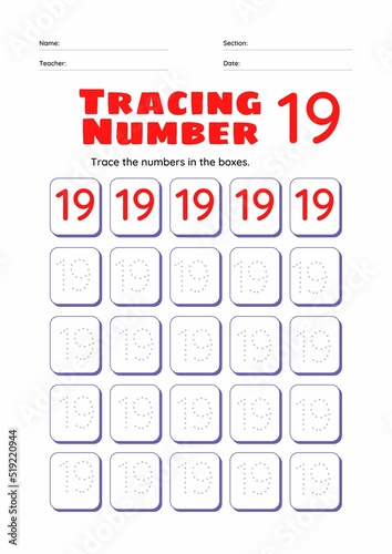 High Resolution full page Kids Counting Practise Study Material, Number Tracing Homework Set for Kindergarten