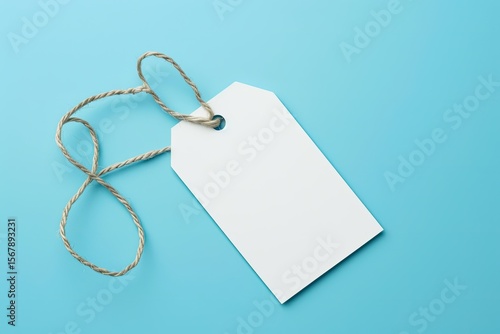 High Resolution Image of Blank White Tag with a String on a Light Blue Background