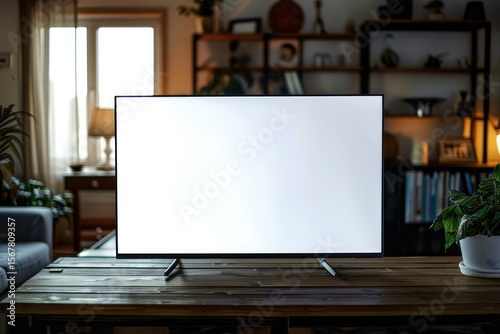 High Resolution Picture of Smart Tv Screen with Copy Space on a Wooden Table