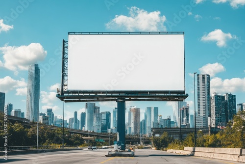 High Resolution Visual of a Billboard with a City Skyline in the Background