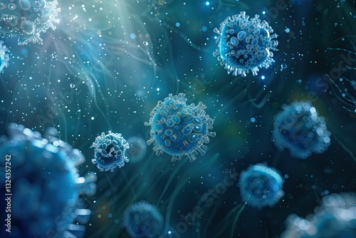 High Resolution Visual of Microscopic View of Influenza Virus Cells Illustration