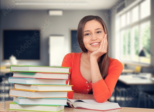 High school student studying in a classroom