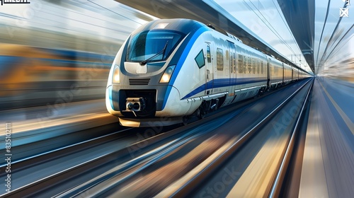 High Speed Train Speeding Along Railway Tracks with Motion Blur