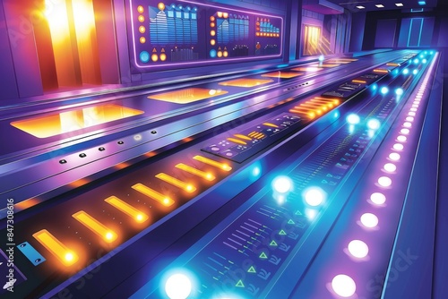 High tech AI data center with vibrant neon lights, symbolizing advanced technology, innovation, and dynamic data processing in a modern, vibrant setting