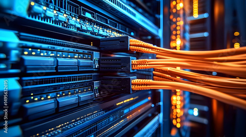 High Tech Server Room with Network Cables and Digital Data Connections : Generative AI