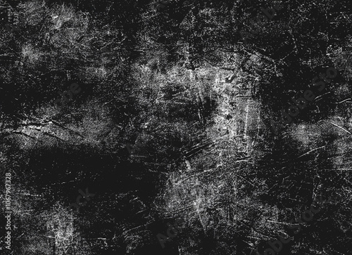 High-contrast black and white grunge texture with a rough, distressed surface, ideal for overlays and backgrounds.