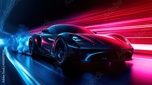 High-End Sports Car Racing Poster: Vivid Neon Colors Highlight Aggressive Features and Smooth Curves on the Track – Perfect for Stylish Sports Decor