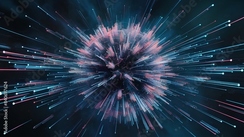 High-Energy Digital Illustration of Futuristic Cybernetic Tunnel with Central Circular Interface and Radial Lines in Blue and Red