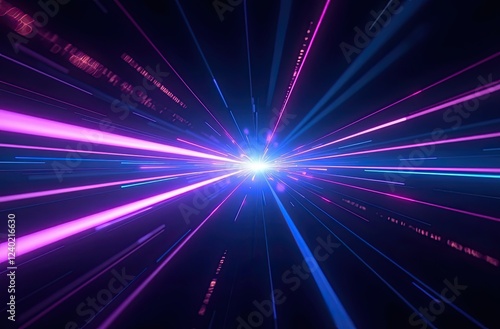 High-energy light streaks in blue and pink, creating a dynamic and futuristic motion effect.