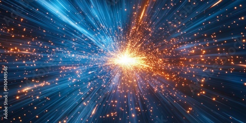 High-energy particle streams radiating from a central explosion in a dynamic cosmic environment