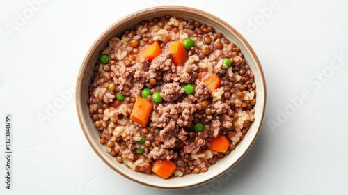 High-fiber dog meal with lentils, brown rice, and ground beef