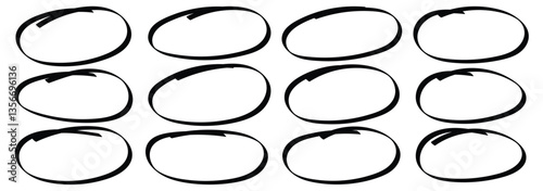 Highlight hand drawn circle isolated on white background. Circle, pen draw. Round scrawl frames. Hand drawn circle highlighter set. Different circles vector illustration.