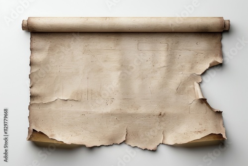 Highly Photograph of Aged Torn Parchment Paper Isolated on White Background