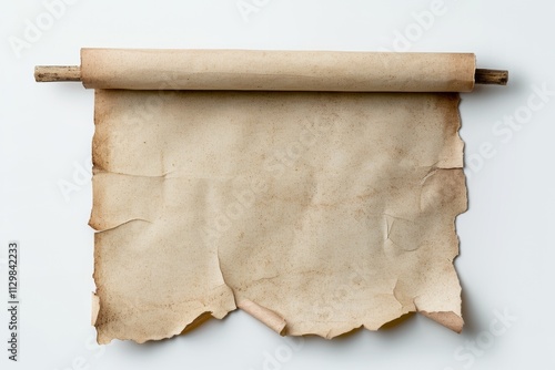 Highly Photograph of an Aged Torn Parchment Paper Isolated on White Background