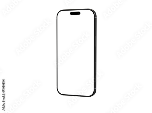 High-quality image of a black smartphone with a blank screen, perfect for app presentations or technology concepts. Clean and modern design.