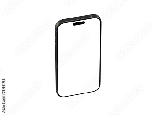 High-quality isometric mockup of a modern smartphone with a blank screen, perfect for showcasing app designs or mobile technology. Clean, simple design.