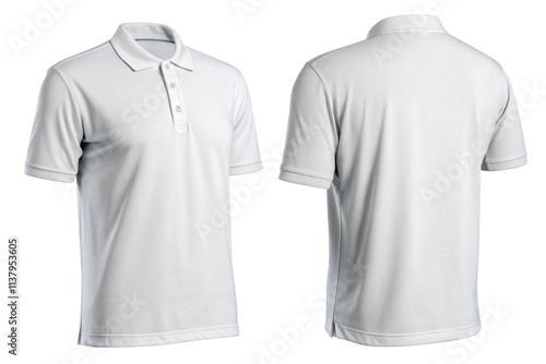 High-Quality Mockup of Blank White Polo T-Shirt with Front and Back Angles.