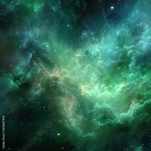High-quality photo of sky galaxy outer space nebula, thousand stars and green galaxy combination with various fractal ideas.