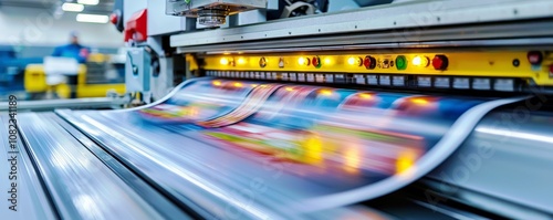 High-Quality Printing Process in a Modern Printing Facility with Vibrant Colors and Motion Blur Capturing Dynamic Print Production Environment