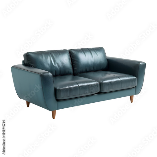 High-Resolution 3D Metallic Blue Leather Sofa – Two-Seater PNG Cutout for Interior Design & Advertising