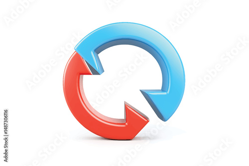 "High-Resolution 4K Red and Blue Circular Arrows Icon Representing Sync, Refresh, Update, and Cycle Process in Digital Technology and UI Design"