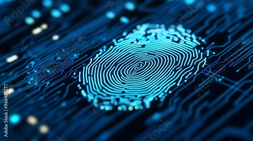 High-resolution close-up of a fingerprint with microcircuitry patterns, biometric tech, digital identification