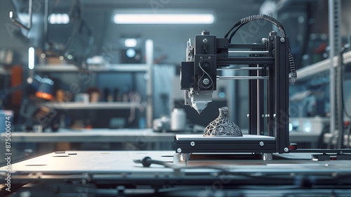 High-Resolution Image of a 3D Printer Creating an Intricate Design in a Modern Workshop