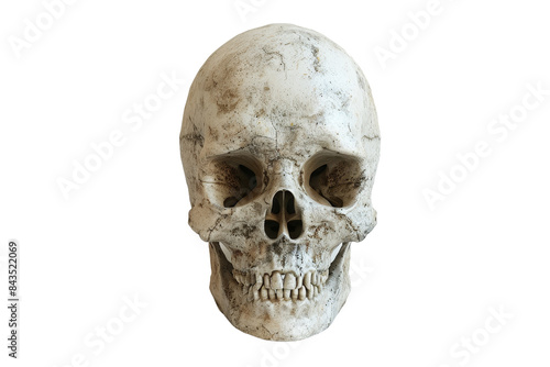 High-resolution image of a human skull isolated on a transparent background. showcasing intricate details and realistic textures.