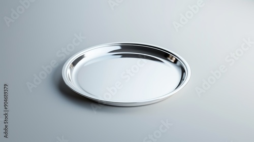 High-resolution image of a polished silver serving tray, reflecting light beautifully, isolated on a plain background with space for text or logos