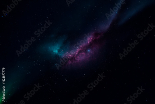 High-resolution image of the cosmos featuring a glowing blue star, dense star fields, and a vivid band of interstellar dust crossing the deep space background.
