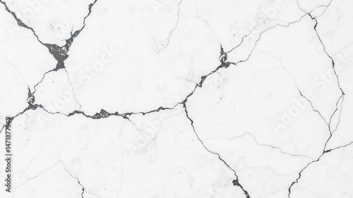 High-resolution image of white marble with thin, dark gray veining and cracks