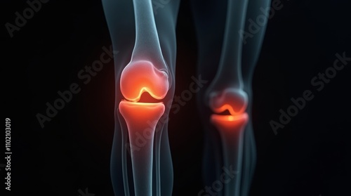 High-resolution X-ray revealing knee joint pain due to bone pathology and arthritis features against a striking black background