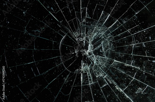 High-speed capture of a full-frame window glass pane bursting and breaking against a dark backdrop.
