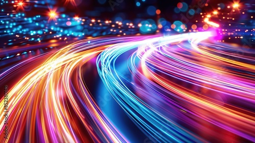 High-speed fiber optic cables with light trails. speed line, futuristic background for 5g or 6g technology wireless data transmission