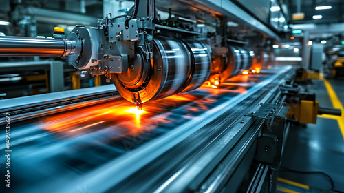 High-Speed Industrial Machine Producing Metal Sheets in Factory