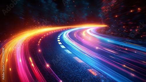 High-speed light trails with motion effect. Illustration of colorful light on a black background. Created by generative AI