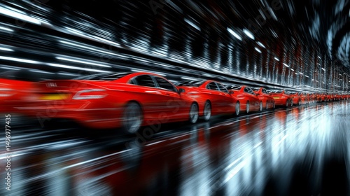 High-speed red sports cars racing through a tunnel with motion blur effects