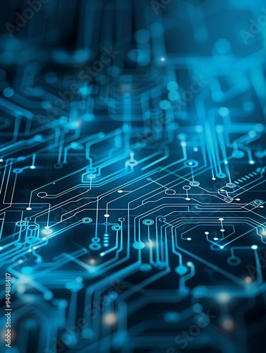 High-tech abstract background featuring a network of glowing circuits and digital patterns, ideal for technology themes with ample space for text.