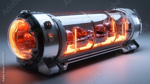 High-tech artificial organ transport system with glowing containment chambers