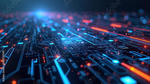 high-tech desktop wallpaper with glowing lines, circuits, and digital elements, giving a futuristic and sleek feel to the workspace