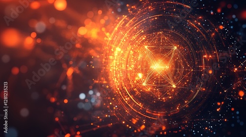 High-tech digital background featuring glowing symbols, data flow, and geometric tech patterns