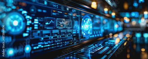 High-tech digital interface with blue circuitry, depicting futuristic and advanced technology