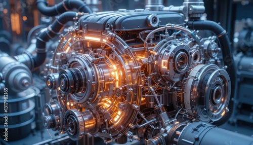 High-Tech Engine Detail with Glowing Elements and Intricate Design