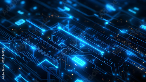 High-tech futuristic circuit board background with glowing blue lines and digital elements