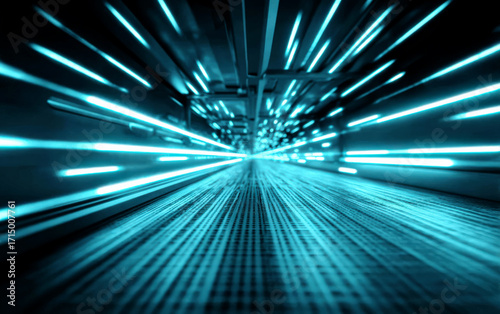 High-tech futuristic tunnel with glowing light streaks moving forward